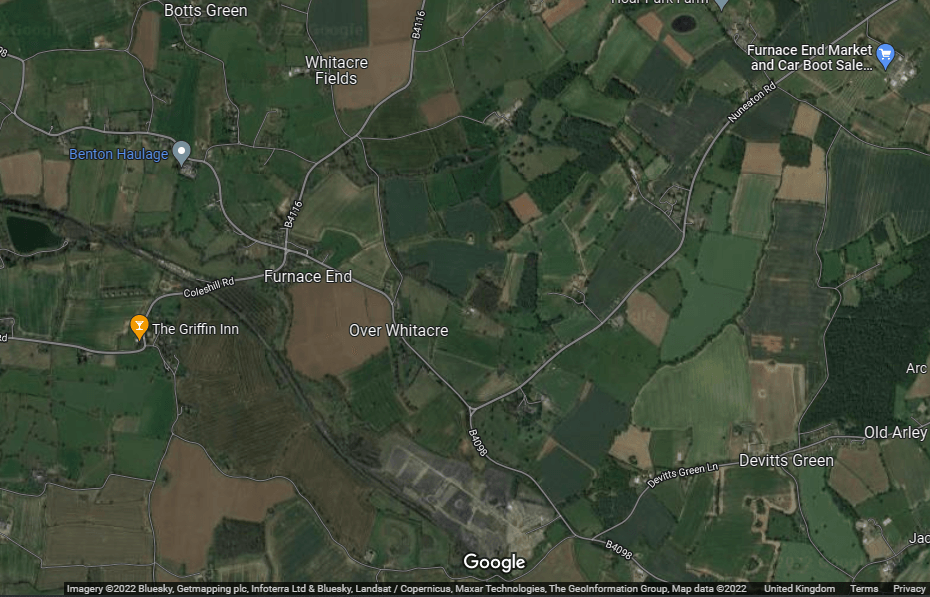 Over Whitacre is a small Parish in North Warwickshire, bounded on the South and West by the Bourne River and on the East mainly by two small streams. It contains the hamlets of Botts Green, Furnace End and Monwode Lea.